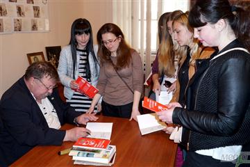 Закінчилася зустріч автограф-сесією для студентів словацького відділення УжНУ та всіх шанувальників таланту Дмитра Кременя.